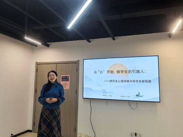 本次培训中,李琳系统探讨了研究生心理健康与导学关系的建设。报告重新审视了导师角色,倡导从学术引领者向人生导师转型,并分析了不同类型导学关系的优劣。最后提出“因材施教”策略,针对不同学生类型和导师风格,提出差异化培养与沟通方式,以促进研究生全面健康成长与科研能力提升。在会后交流环节,与会教师就“如何对不同的研究生类型因材施教”、“导师与研究生角色互换思考”以及“如何动态调整导学风格”等内容与李琳老师开展了热烈地沟通讨论。