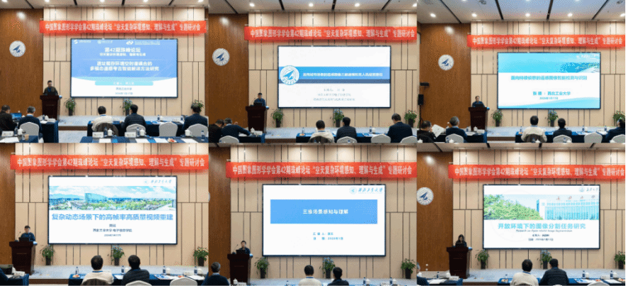戴玉超教授、梅少辉教授、党政教授、樊斌教授,长安大学高涛教授主持。八位专家聚焦“空天复杂环境感知、理解与生成”这一核心议题,从不同维度分享了前沿技术成果。北京空间飞行器总体设计部王大轶研究员提出了基于能力定量表征的序列图像自主导航技术体系,为空间飞行器在低资源条件下的安全运行提供了新思路。中国科学院大学吕科教授深入解析了高保真数字人的关键突破及典型应用落地挑战。大连理工大学卢湖川教授展示了生成模型在多模态内容感知与个性化生成方面的最新进展。吉林大学王世刚教授从光场成像出发,探讨了智能感知体系的构建及在元宇宙场景中的应用潜力。清华大学陈辉教授(代丁贵广教授)重点介绍了多模态大模型的推理优化技术,为大模型在端侧场景的规模化应用提供了支撑。四川大学刘怡光教授则深入探讨了空基无人系统的探测感知与对抗智能,分析了多源传感方式在实现高效探测中的关键作用。北京师范大学张立强教授介绍了利用高分辨率遥感影像进行全球中低收入国家贫困制图的最新进展,为全球贫困评估提供了重要的数据基础。北京航空航天大学徐迈教授则介绍了稀疏驱动的多模态遥感图像智能处理方法,通过稀疏建模提升了模型的可解释性与处理效果。与会专家结合自身科研历程与学术经验,展开了深入且富有启发性的互动交流,分享了科研道路上的宝贵心得。