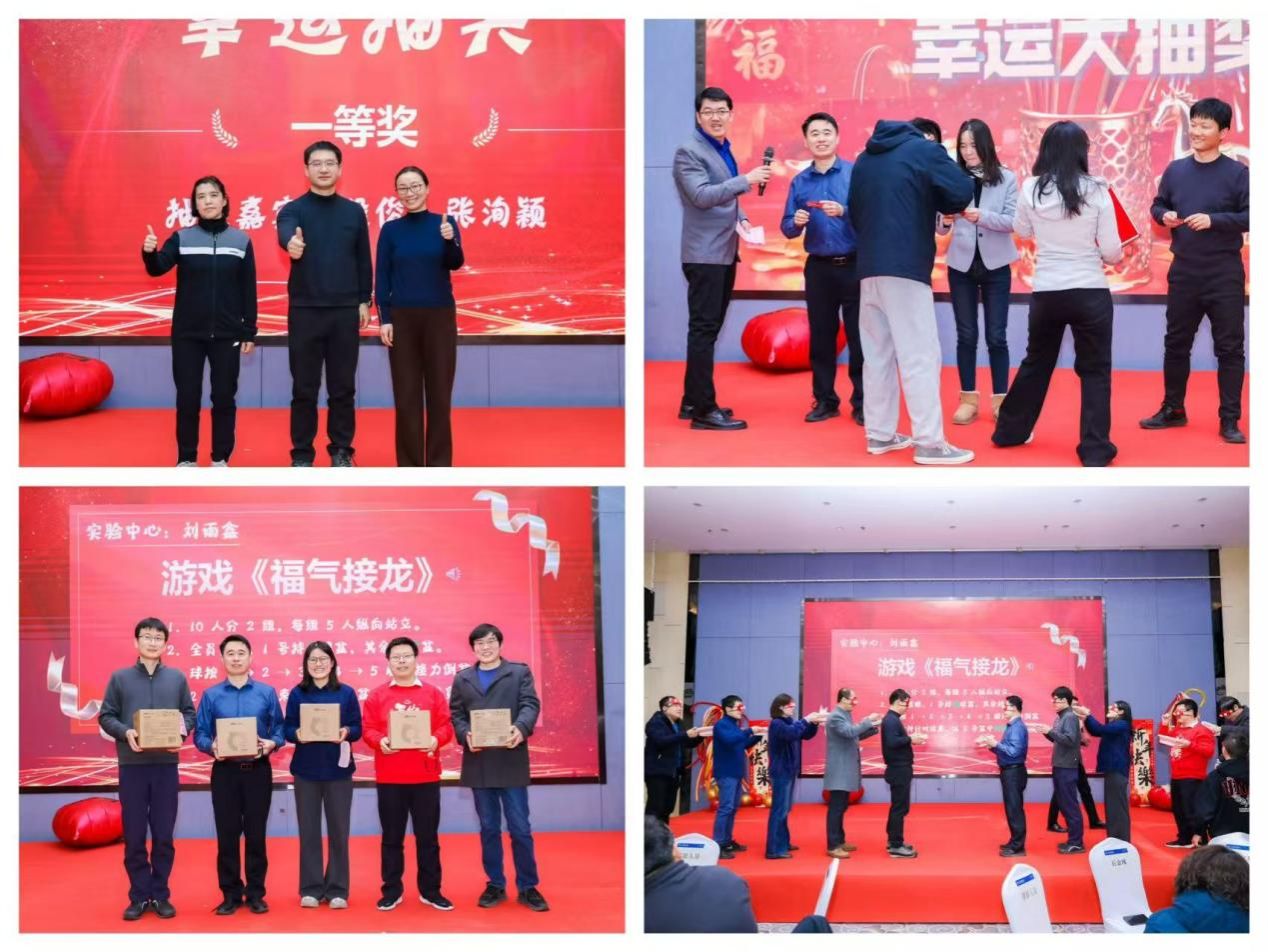 联欢会还设置了多轮抽奖和互动游戏环节,“福气接龙” 等趣味游戏让现场笑声不断,幸运奖、三等奖、二等奖、一等奖与特等奖的逐一揭晓,更是将现场气氛推向高潮。最后,在大合唱《学院明天会更好》与《我和我的祖国》歌声中,为本次联欢会画上了圆满的句号。