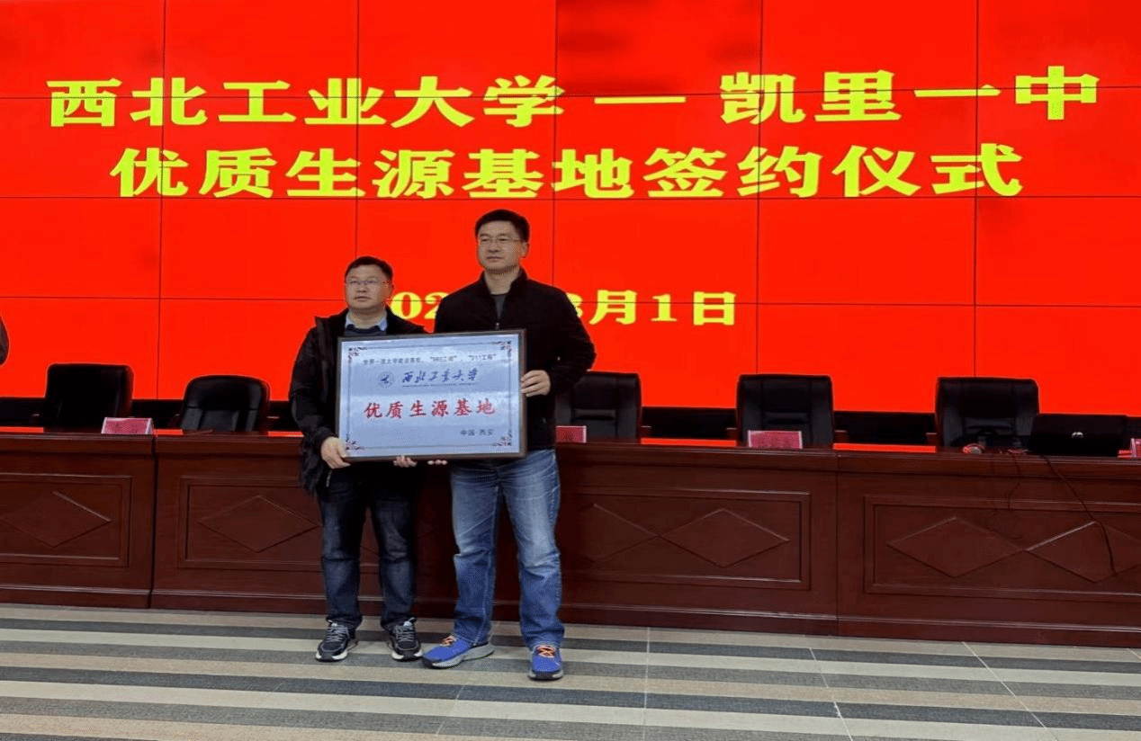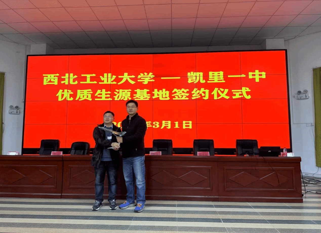-凯里一中“优质生源基地”共建协议,并向凯里一中授牌,同时赠送由我校校友杨伟院士担任型号总师的歼-20战斗机模型和6套由动漫在线