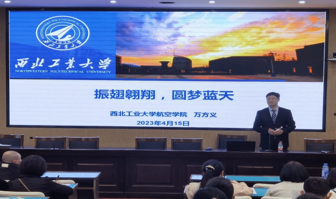 随后,副院长万方义为镇海中学200多名学生与家长做了《振翅翱翔,圆梦蓝天》的科普讲座。万方义从什么是飞机、飞机为什么会飞、航空科技发展、中国的大飞机历程、飞机设计师的摇篮-西工大等方面阐述了西工大在中国航天史上的重要作用,学生和家长认真聆听,现场氛围活跃、掌声不断。