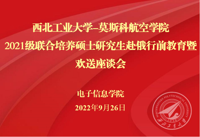 -莫斯科航空学院(以下简称“西工大—莫航”)2021级联合培养硕士研究生召开赴俄行前教育暨欢送座谈会。学院党委书记侯俊、院长王伶、党委副书记高敏、副院长姚如贵、“西工大—莫航”项目负责人高晓光教授、李波副教授以及2021级莫航项目11名学生参加会议。会议由副院长姚如贵主持。