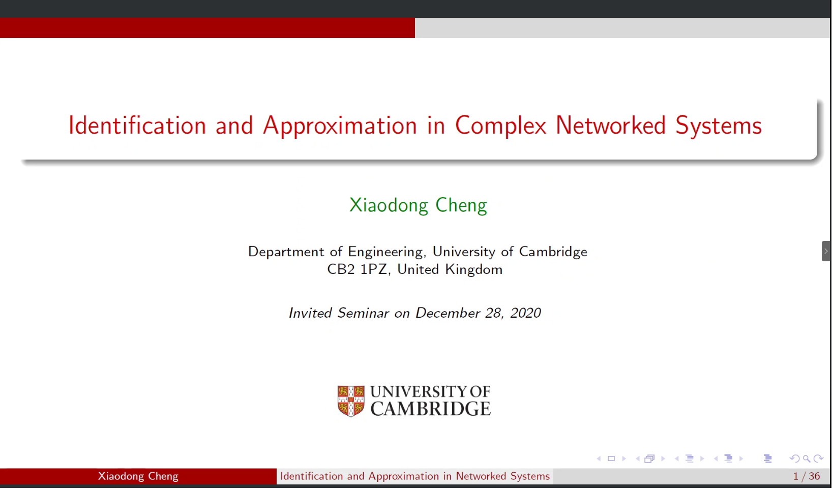 张堃副教授邀请,2020年12月28日晚上,英国剑桥大学Xiaodong Cheng博士举行了题为“Identification and Approximation in Complex Networked Systems”的在线学术报告。Xiaodong Cheng博士的报告分为了两个部分。第一部分介绍了网络化系统中的系统辨识问题,展示了这一方向上的最新成果。第二部分介绍了复杂网络化系统的模型降阶问题和方法,指出了未来发展方向和今后的思考。