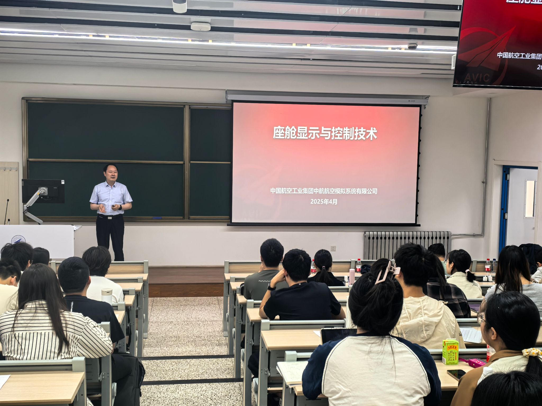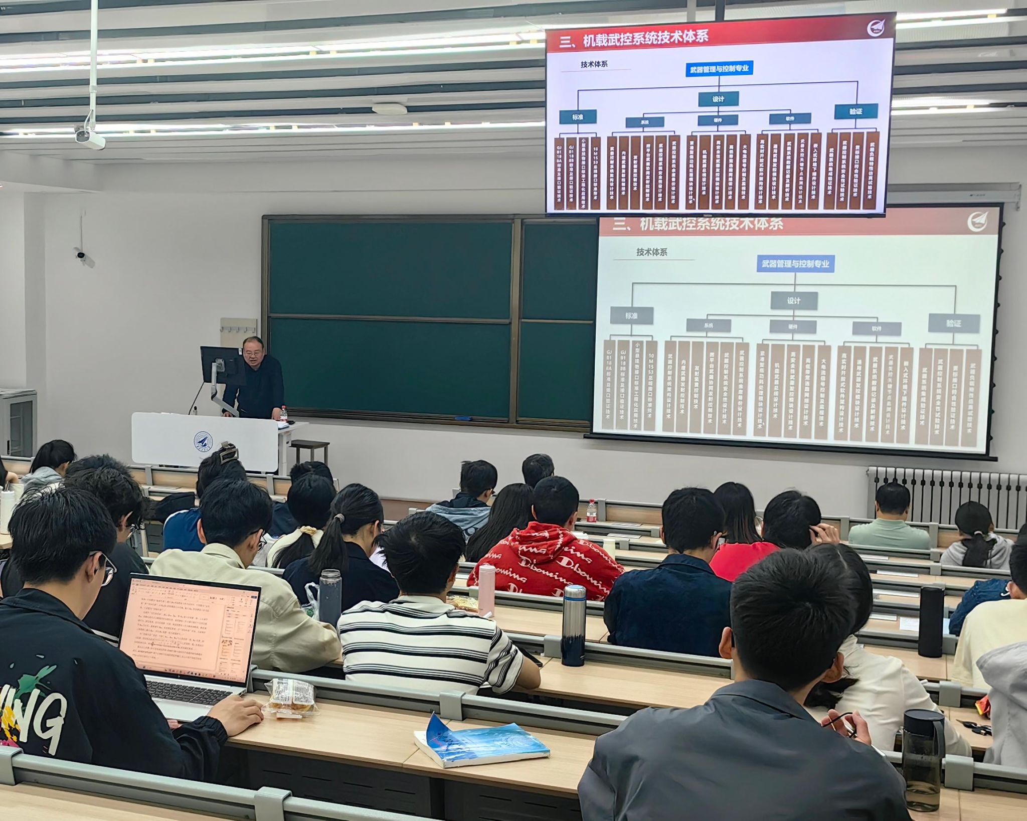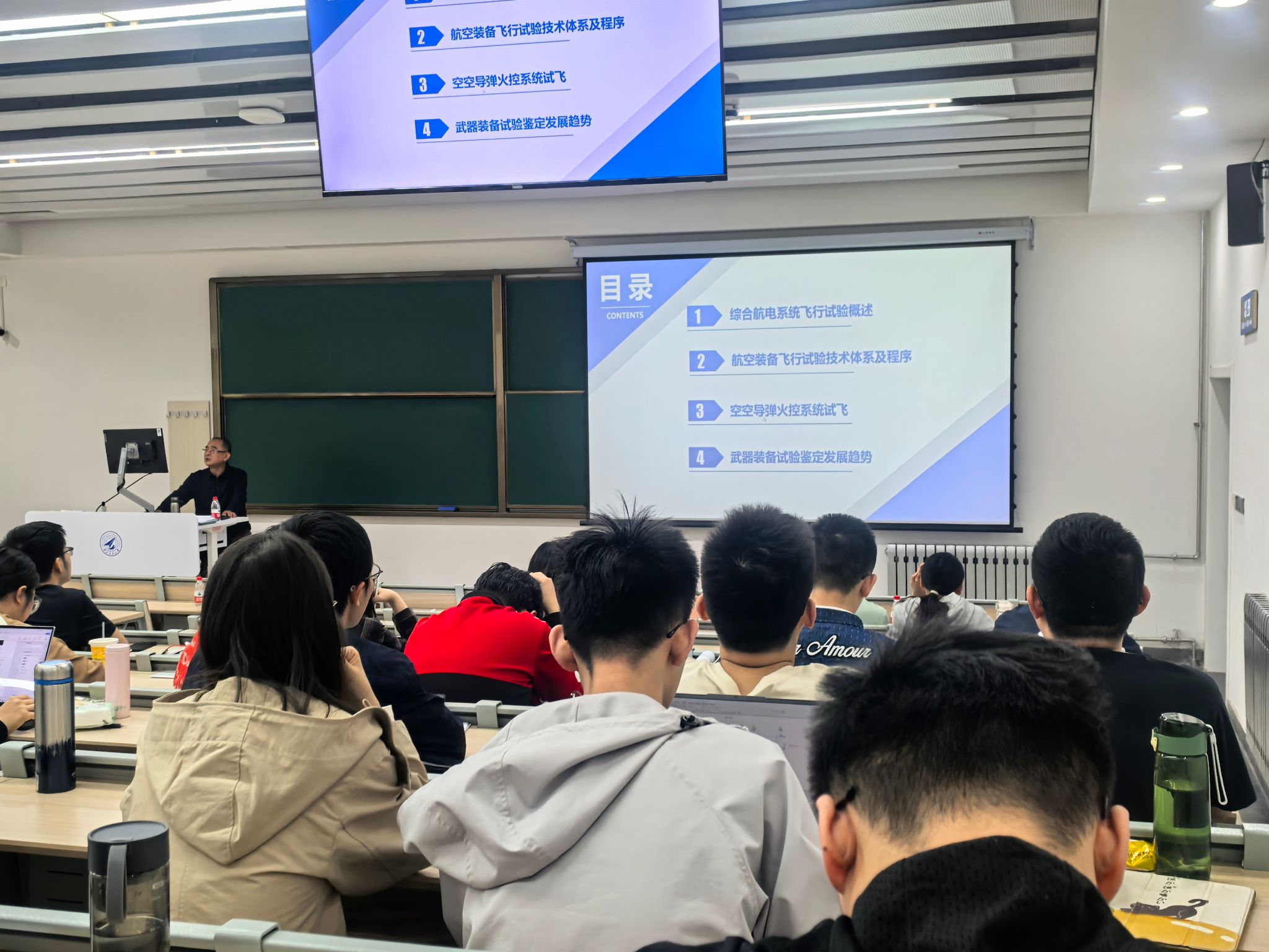 课程主要围绕“综合航空电子系统”展开,讲授内容包含综合航电系统的设计、座舱显示与控制技术、悬挂物管理系统设计、综合航空电子系统飞行试验等模块,四位专家总师结合自身数十载一线研发经验,为本科生带来理论与实践深度融合的“硬核课堂”。总师在课堂中勉励同学们认真体会复杂装备研制中的系统思维,掌握航电系统设计的核心内涵,提升专业能力。
