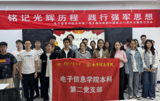 本科第二党支部在学院236会议室开展了“铭记光辉历程 践行强军思想——庆祝新中国成立75周年”主题党日活动。本次活动由宣传委员时嘉乐主持。